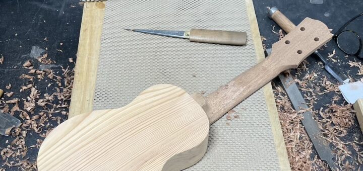 前回、ヘッド天神板まで貼ったウクレレ。 いよいよ本格的に製作開始です...