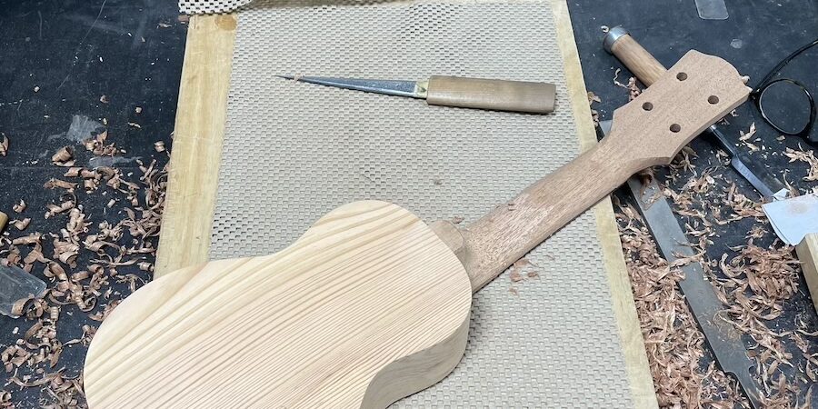 ソプラノウクレレ製作。 今回はいよいよ甲付け作業です。 まずは、知明...