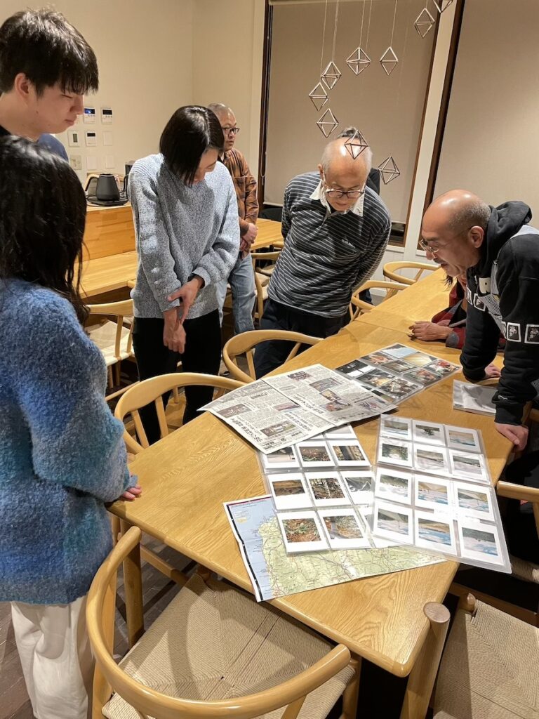 楽器を皆さんに体感していただいた後は、美味しい食事を全員で囲んでいただきました。食後は、今回も現地で合流、同行していただいた、写真家の八木 香保里さんの写真で盛り上がります。