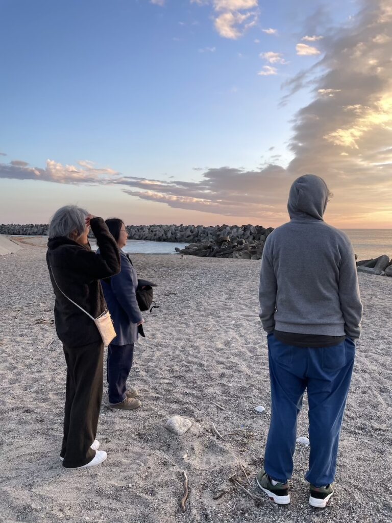 美しい朝陽に見惚れていると、広野駅前の「柏屋」さんの木村さんが!美味しそうなさつまいもをいただいてしまいました。