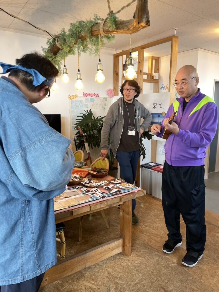 ご来場いただいた皆さまに楽器をご覧いただいたり、演奏していただいたり、八木さんが持参した写真をご覧いただいたりと、会場はとても賑やか。