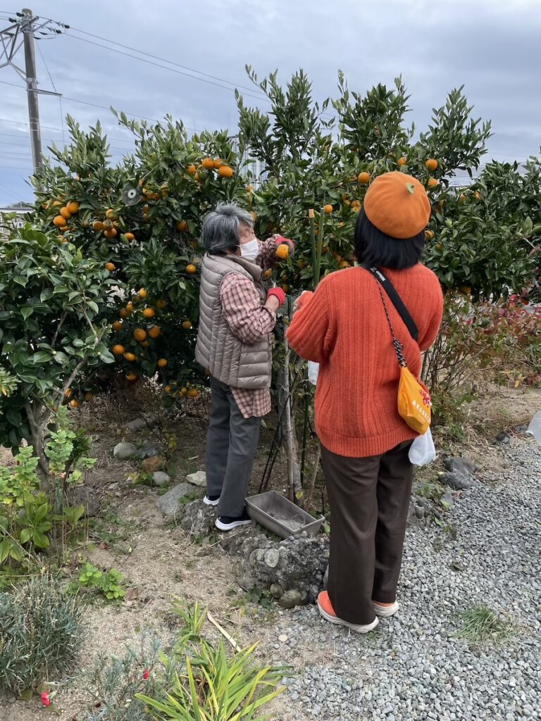 出店者さんの焼きそば&焼き鳥をいただいたり、地元の方にみかんをいただいたりと、とても楽しいひと時でした。