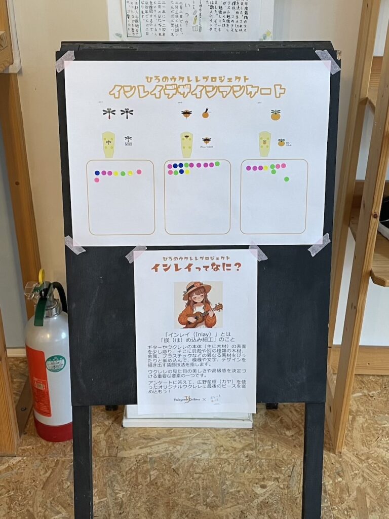 今回は、現在進めている「ひろのウクレレプロジェクト」の一環として、町民の皆さまにヘッドにいれるロゴマークを投票でお選びいただこうという企画も同時開催する事になっていました。