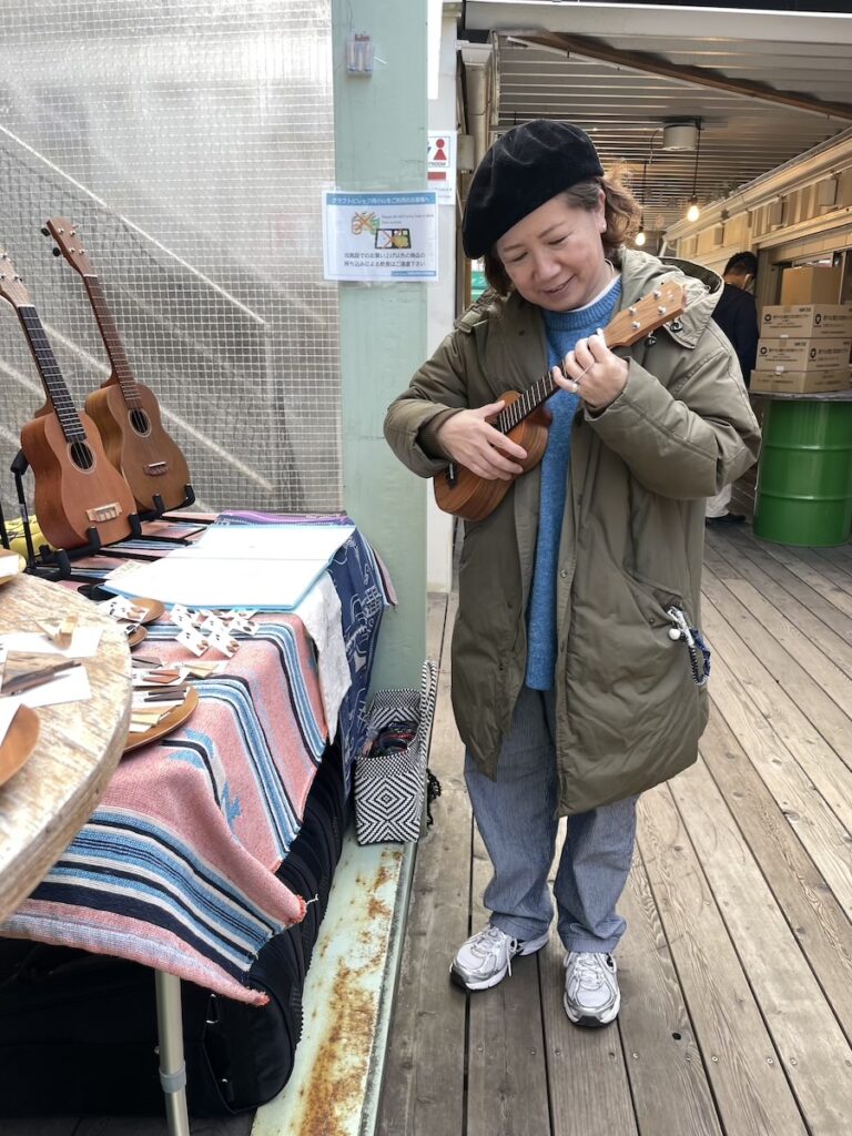 ウクレレを弾いていただいたり、アクセサリーをお選びいただいたりと、嬉しい景色です。