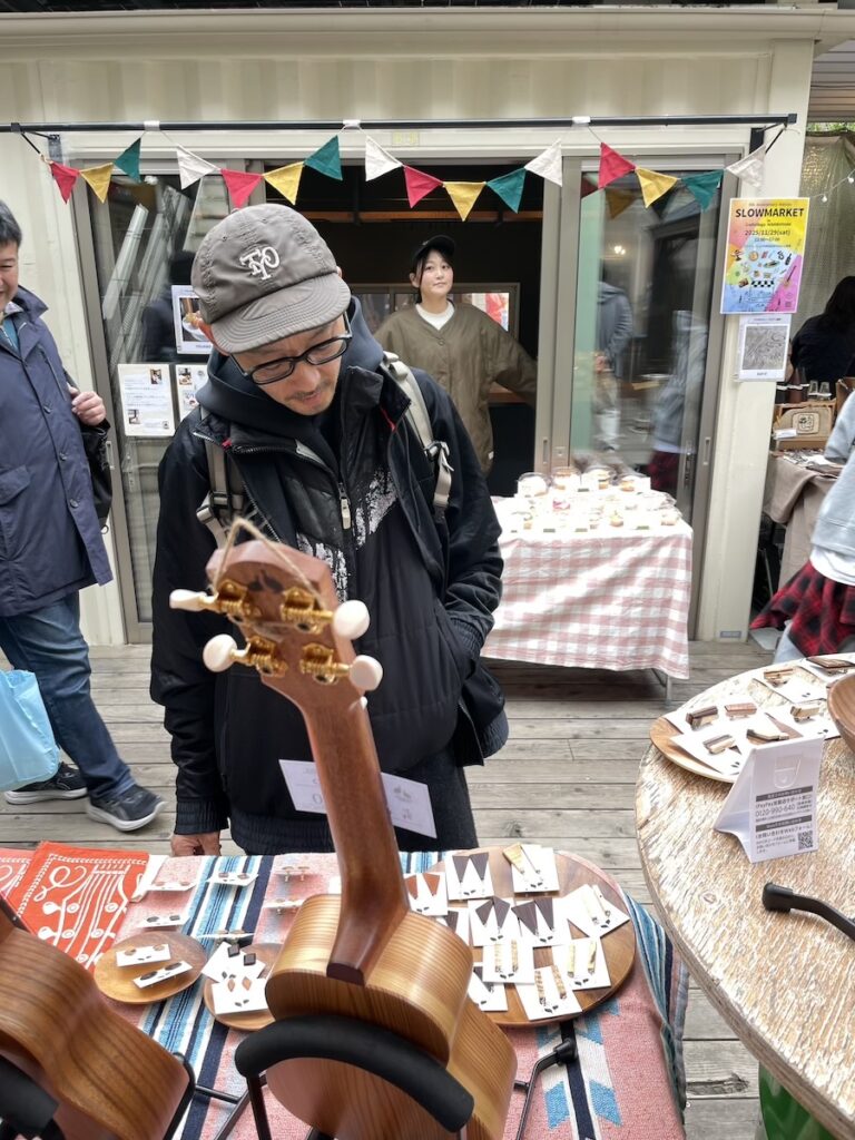 東急目黒線の西小山駅北側に位置するクラフトヴィレッジ5周年を記念して開催された、「SLOWMARKET」。Hashikawa Guitarsも、製作したウクレレや、アクセサリーを携えて、初参戦させていただきました。