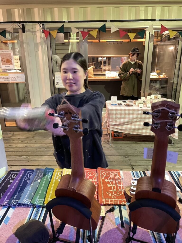 素敵な出店者さんが、テンポ良く準備を進める中、イベントの主催者であり、カンタ刺繍の作家さんでもある斉藤 由佳さんから、以前お願いしていたウクレレストラップの納品がありました!