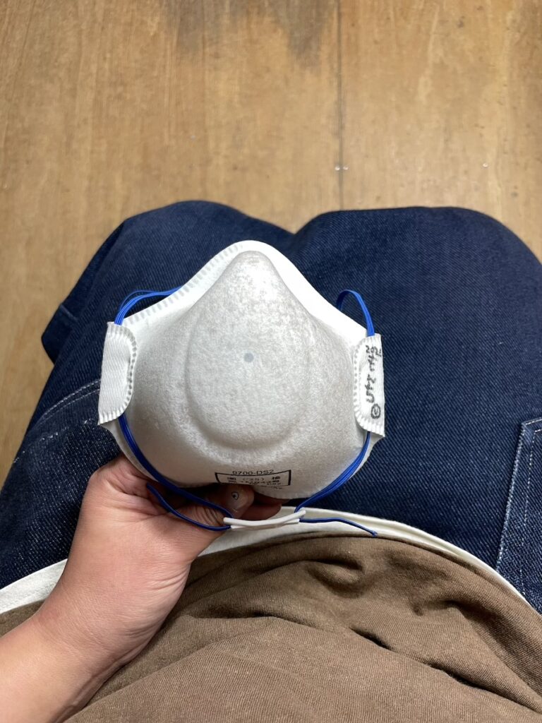新しいマスクに交換して、バインディングを巻いたボディのサンディング作業です。