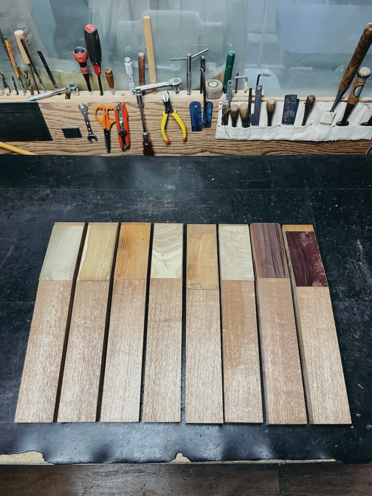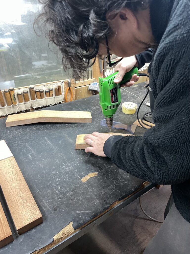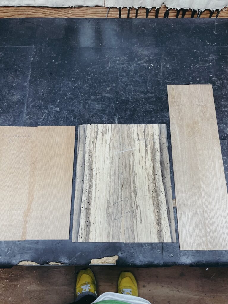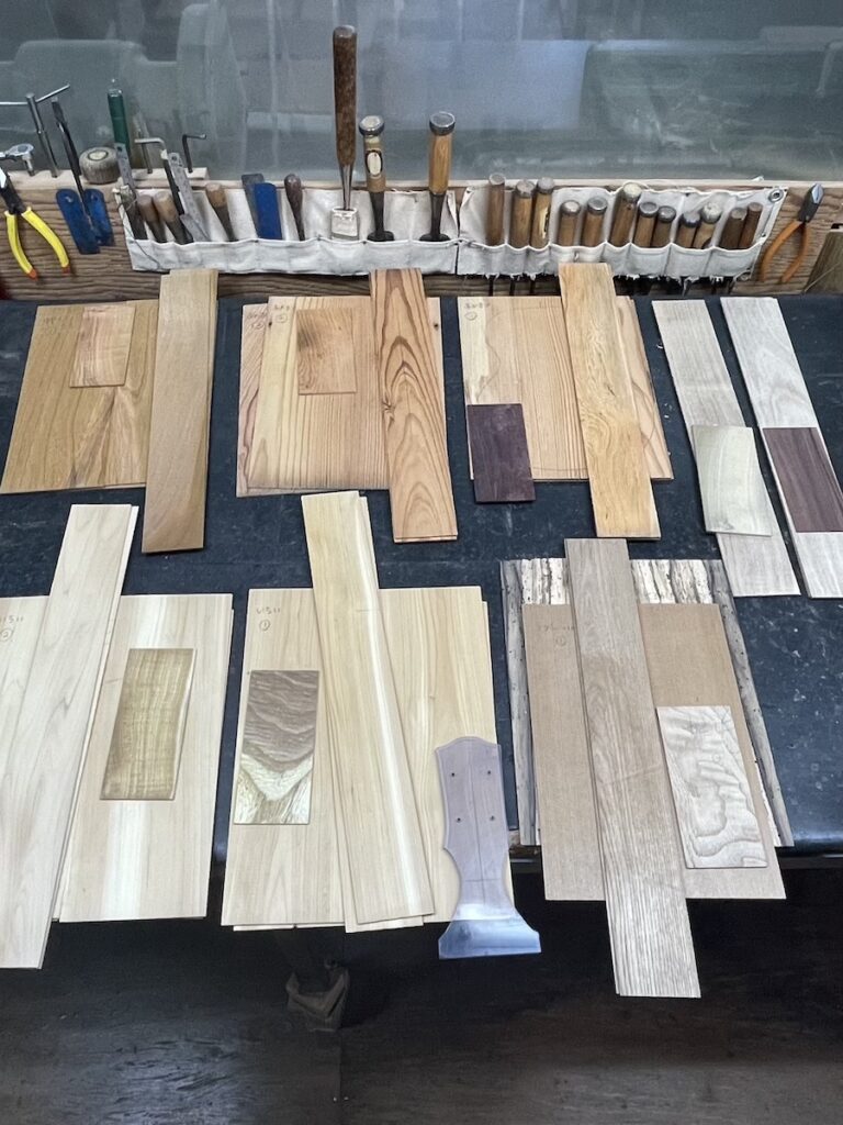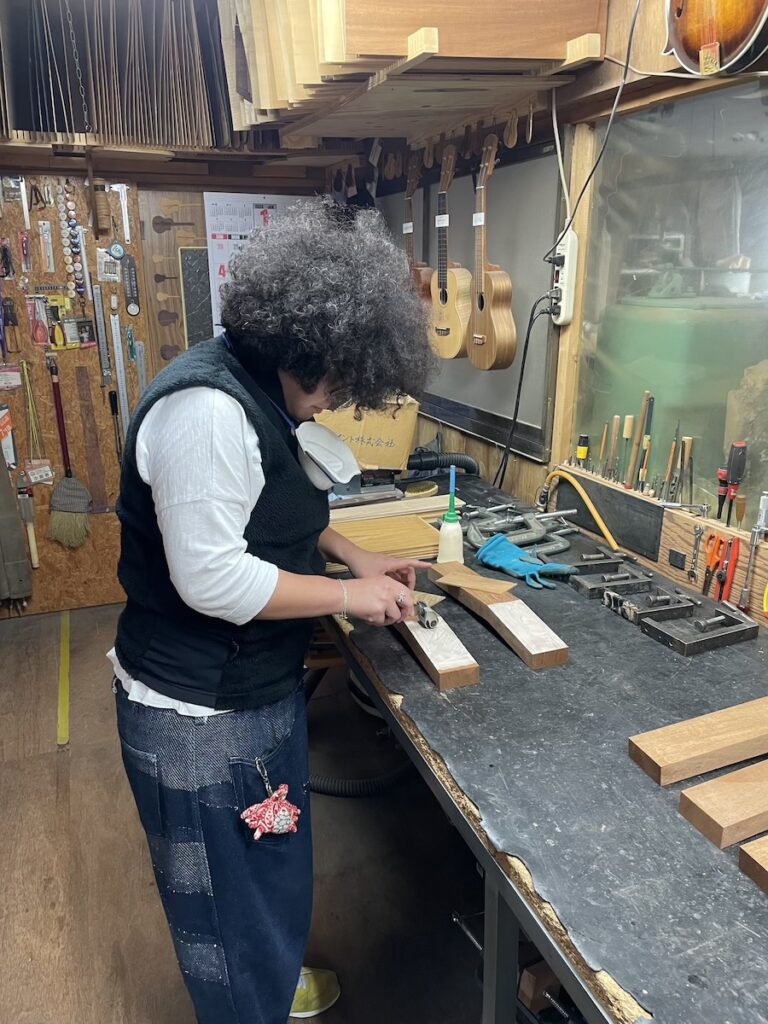 ネックを削っている間は、美紀さんの手が空いているため、師匠から「もう次に作るモデルの材料でも選べば?」と提案いただきました。