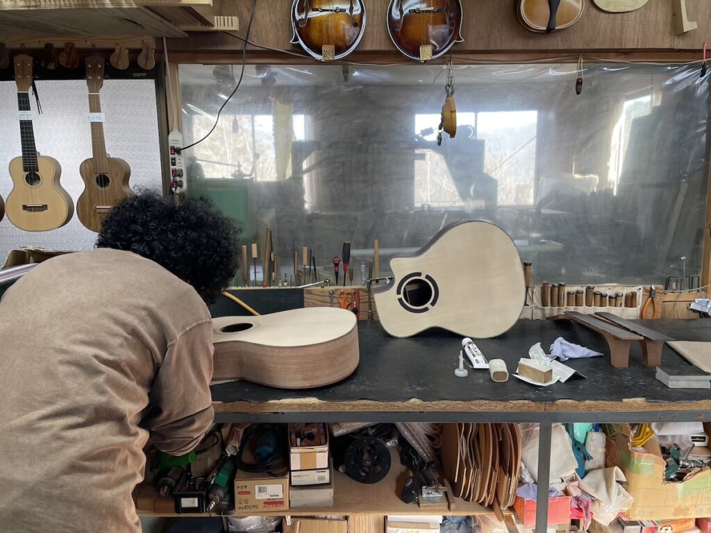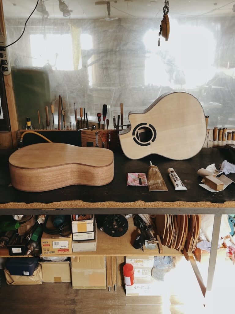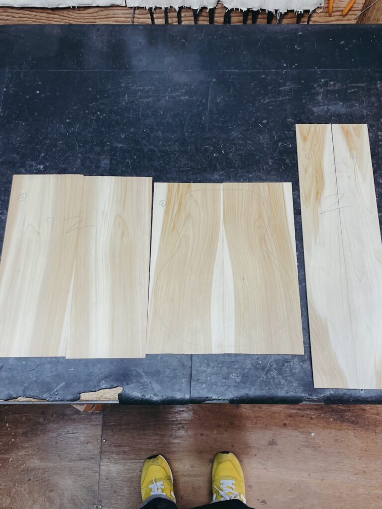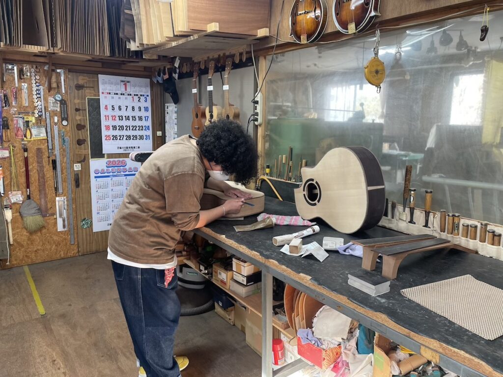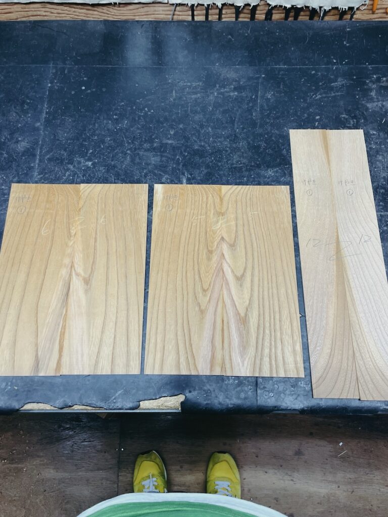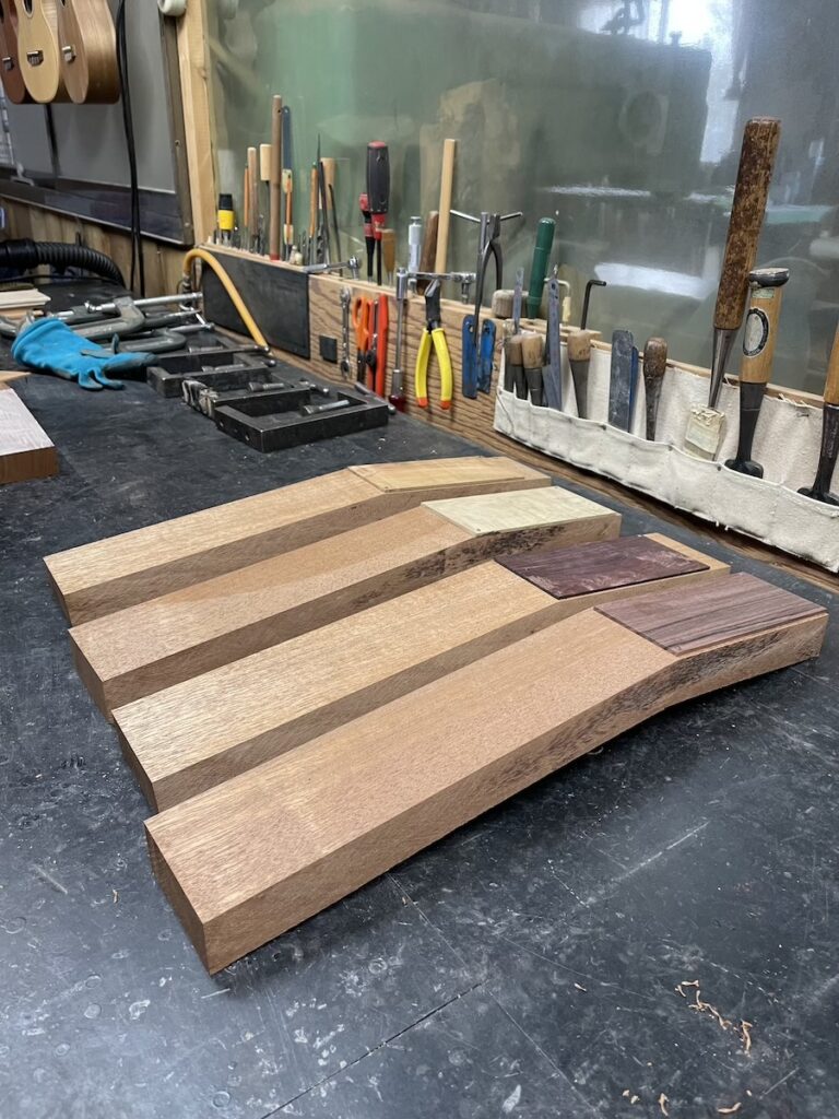 ネックを削っている間は、美紀さんの手が空いているため、師匠から「もう次に作るモデルの材料でも選べば?」と提案いただきました。