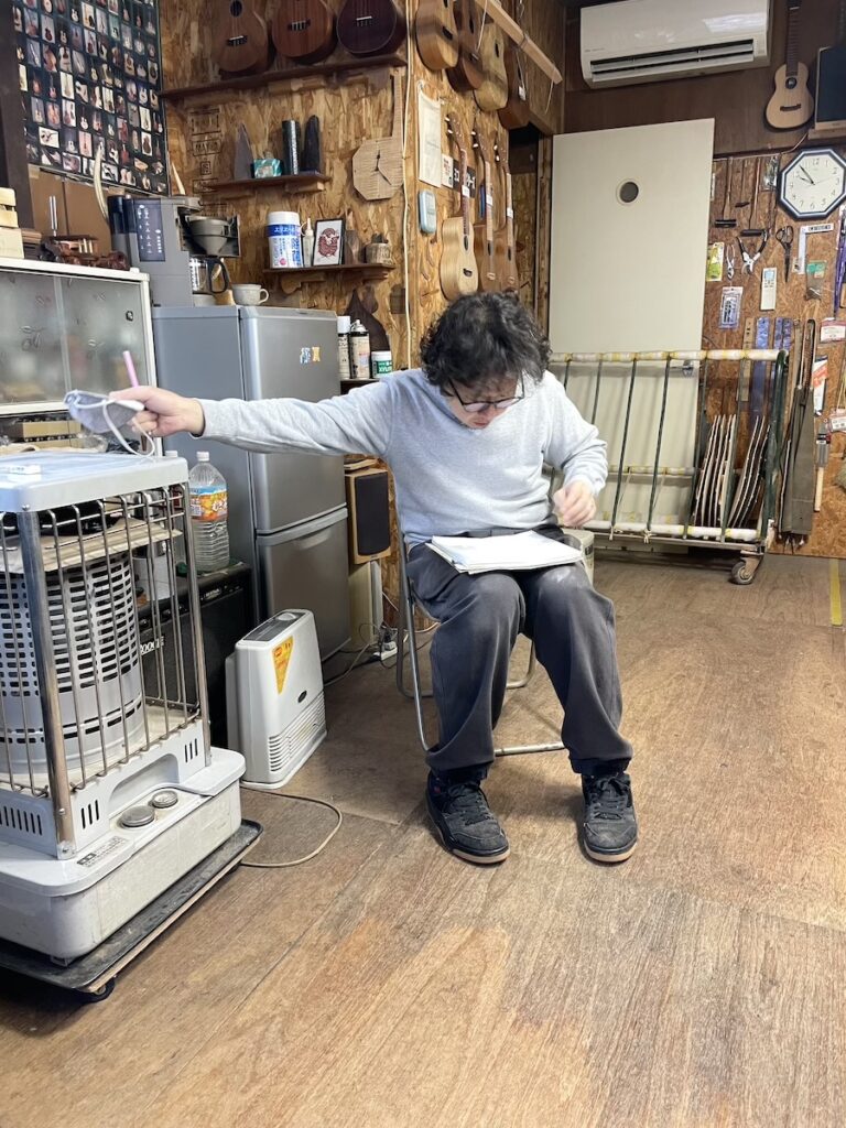工程を忘れてしまわないように、作業中もメモを取り続けます。ギター製作は工程がとても多く、複雑なため、とても大切です。