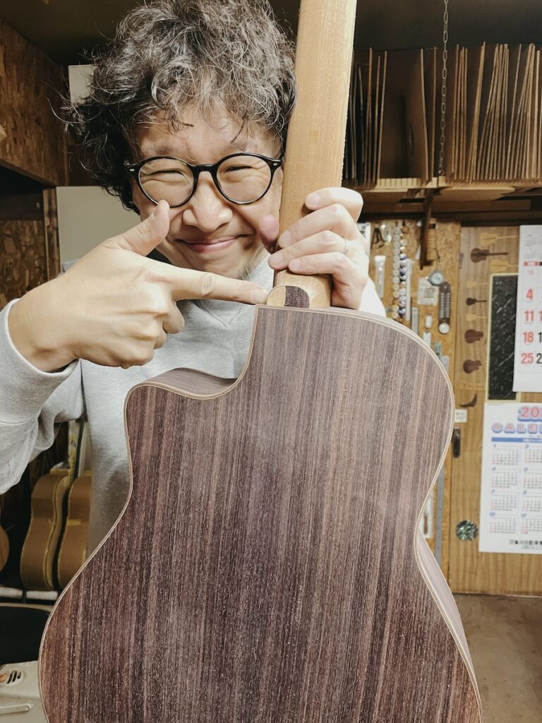 横では知明が、もう一本のネックをせっせと削っています。