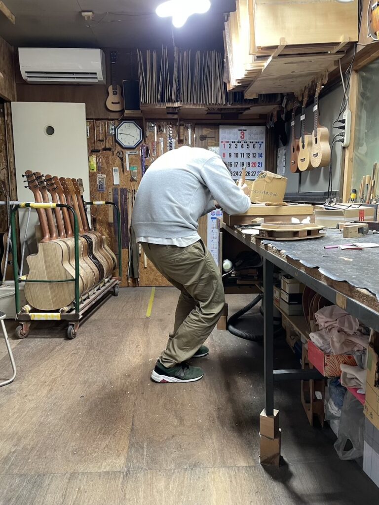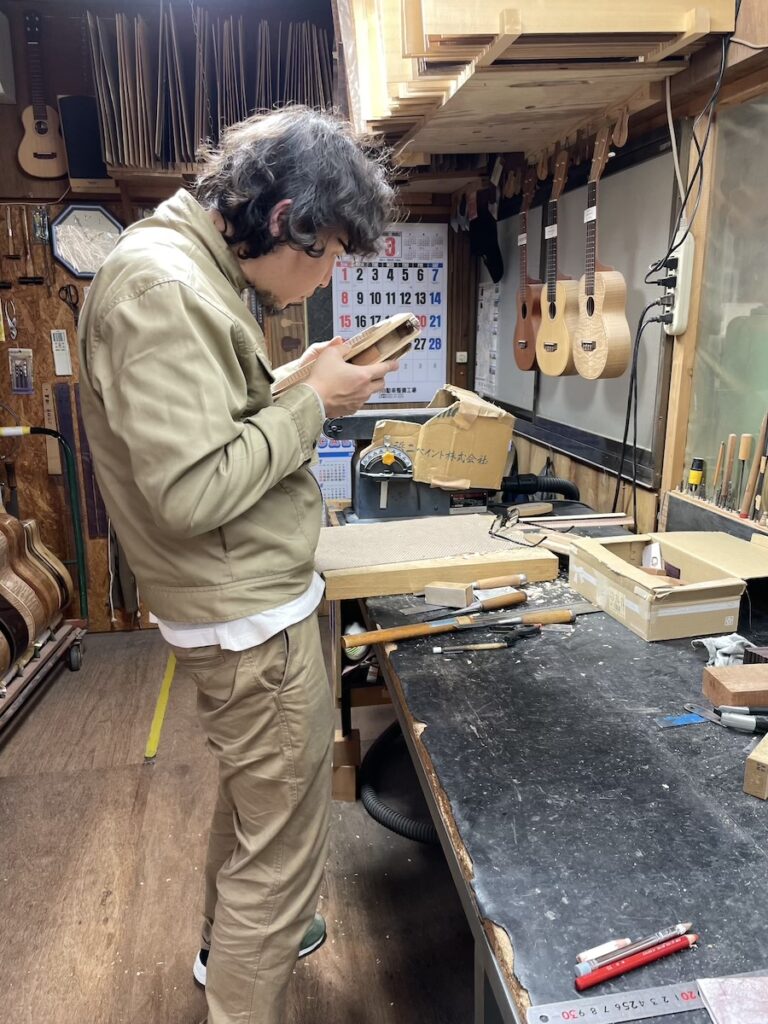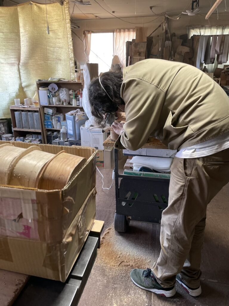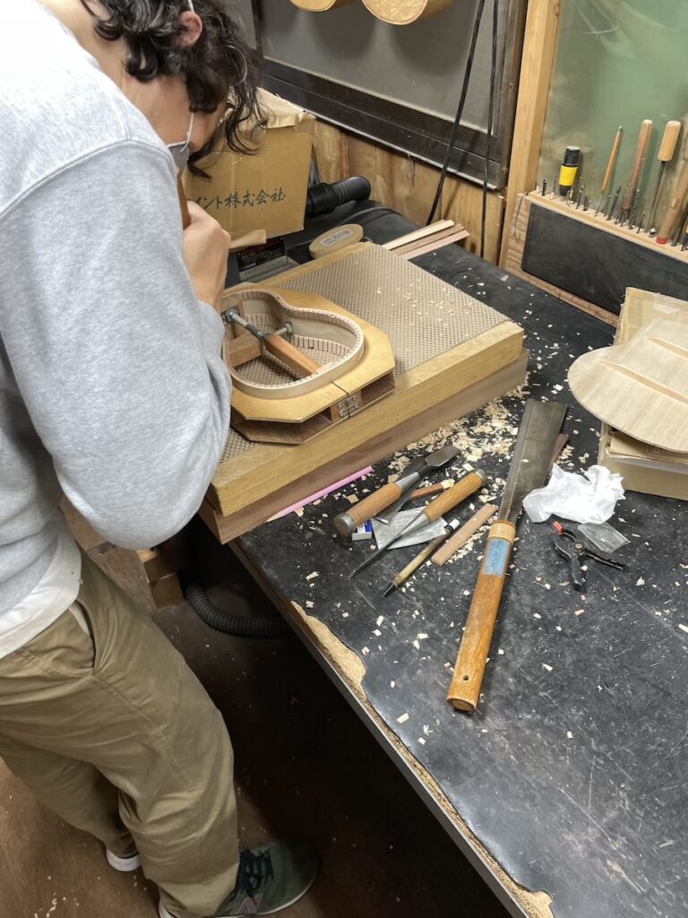 知明は鑿と鉋を使い、胴厚を仕上げていきます。