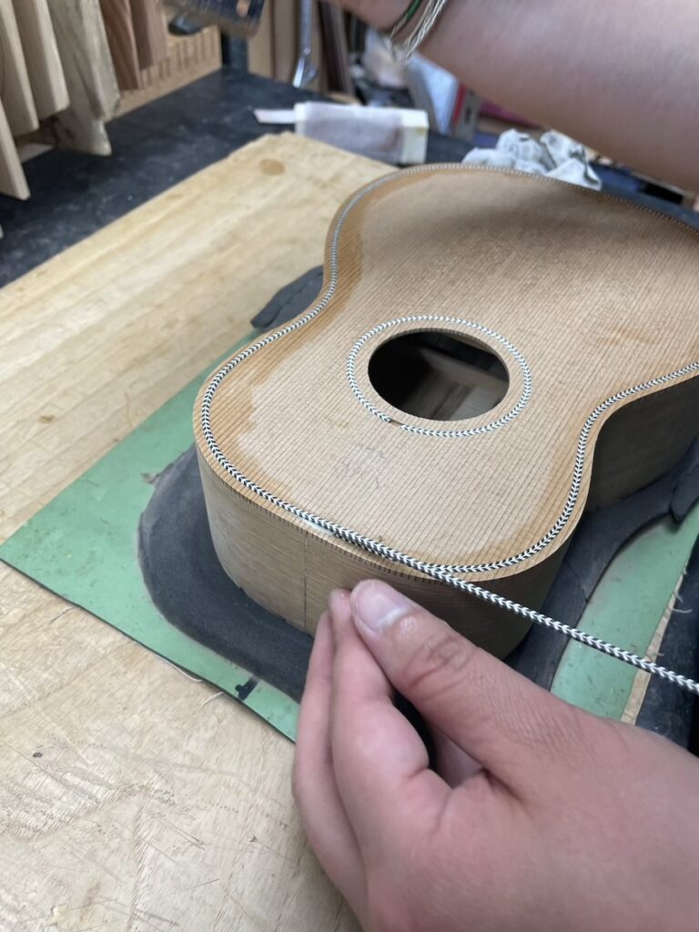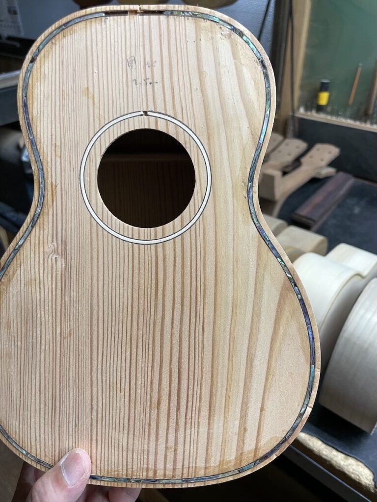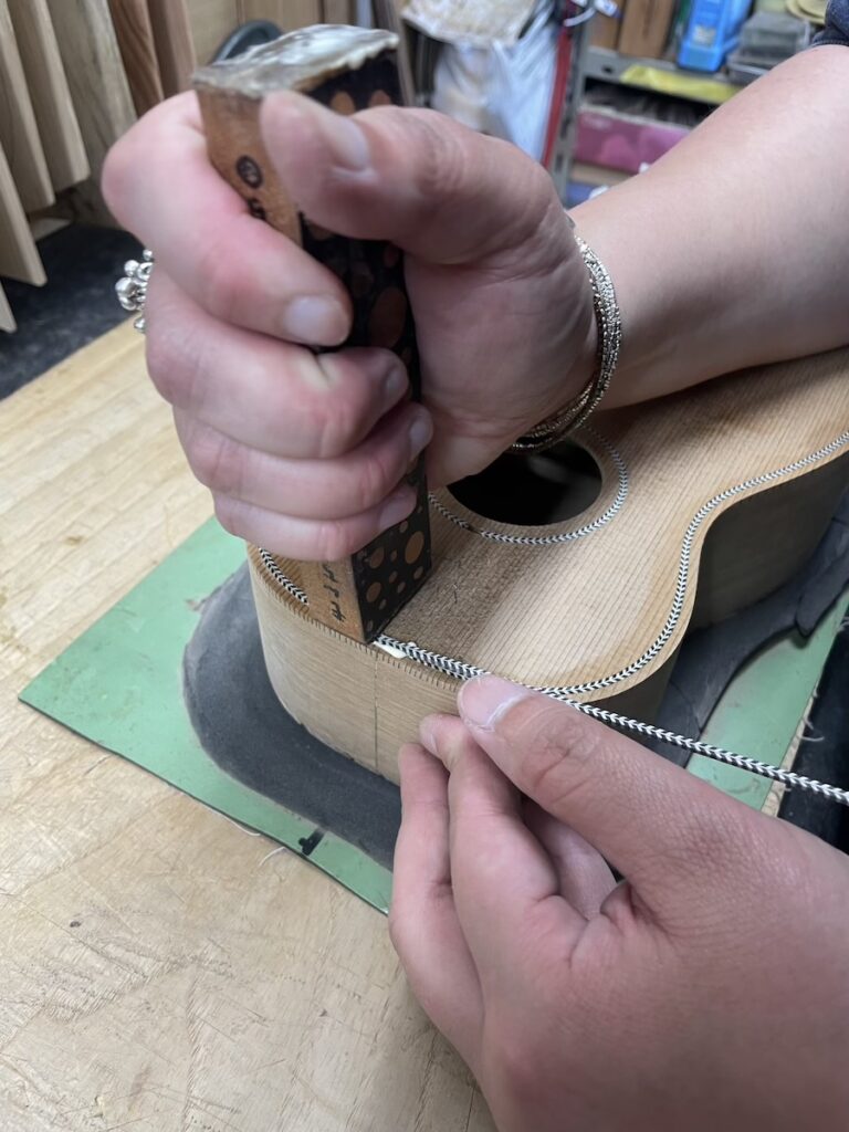 前回やり残した、ボディトップのパーフリング加工からスタートです。