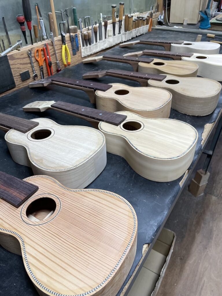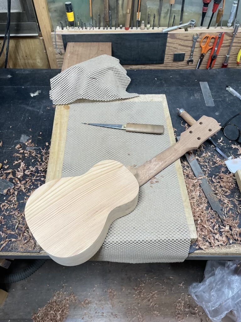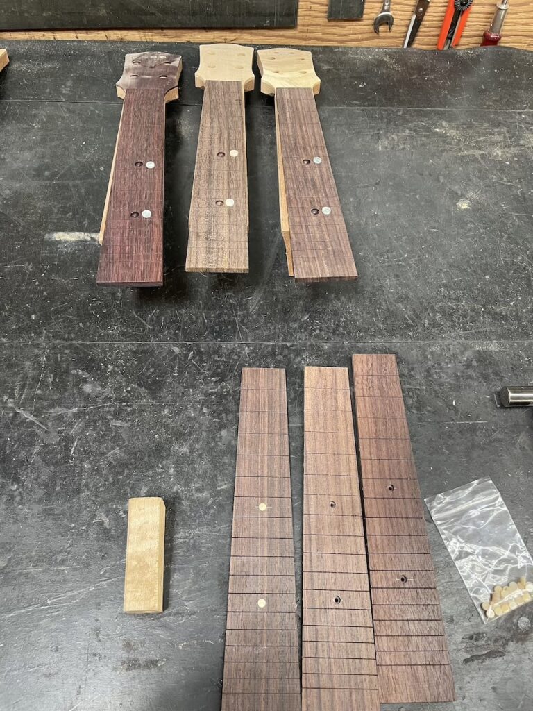 ネック整形、サンディングを2日間かけて仕上げ(8本あるので時間がかかりました…)、次回は指板サンディング、フレット打ちからスタートです。